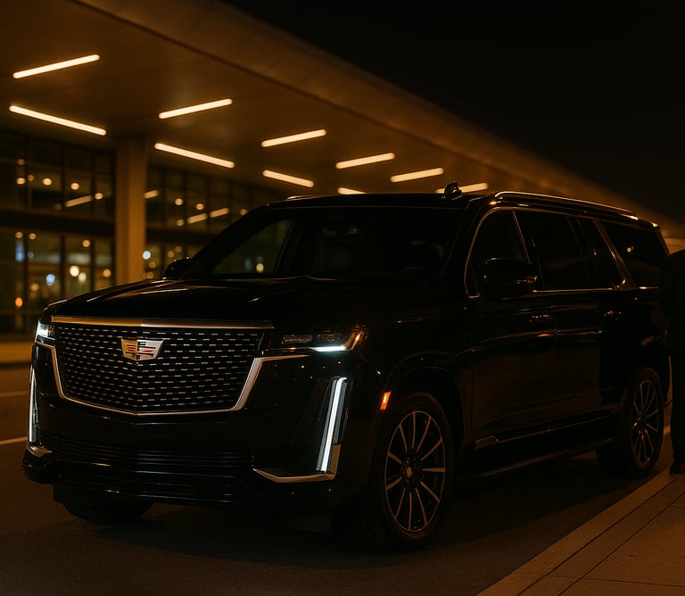 We provide late-model black SUVs like Cadillac Escalade ESV and Chevrolet Suburban.